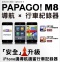 研勤科技正式對外發佈iPhone版PAPAGO! M8 Pro導航軟體。PAPAGO!M8 繼承研勤科技所研發的M7版本擁有智慧導航、3D地形圖、景點書及CCTV國道即時交通影像等多種技術,同時新增行車記錄器的錄影功能,提供駕駛人旅程多重安全保障。