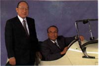 | 日產汽車會長久米豐(左)和社長边義文。 |
