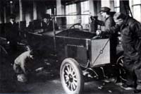 | 富豪的第一部車QV4,正從裝配線完成下線(一九二七年)。 |